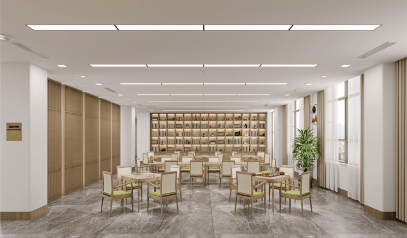 中晟百晨养老院以亲情化办事为纽带,专属 V - Care 照护系统为定制个性化保养方案,棋牌活动区,